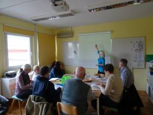 Ga. Vesna Bubnjič, profesorica nemškega jezika, nam je predstavila osnove nemščine. Preživeli smo čudovito popoldne, v prijetni družbi in se veliko naučili :)